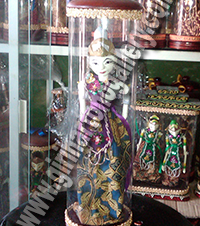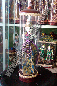 Wayang golek dengan tabung mika tinggi 25 sangat cocok untuk souvenir pernikahan, khitanan atau sebagai hiasan di rumah.